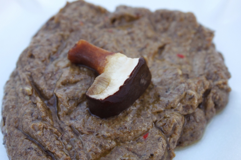 | Složení: | houbová směs 70%, parmazán 10%, tymián, pražené vlašské oříšky 5%, česnek, cibule,sůl, pepř, olivový olej, |
