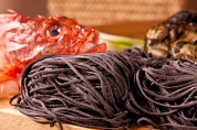 | Složení: | Pšeničná semolinová mouka z tvrdé pšenice 40% hm., hladká mouka 40% hm., inkoust sépie pasterované vejce 20%hm., pitná voda, rýž. mouka 2%hm. |