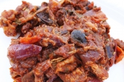 | Složení: | ančovičky, cherry rajčata, drcená a loupaná rajčata, lilek, červená cibule, celerová nať, cibule, česnek, bazalka, rozmarýn, černé olivy, kapary, rozinky, marsala, olivový olej, cukr, bobkový list, hladká mouka, vinný ocet rosso |